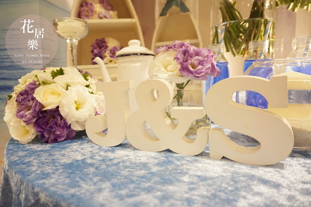 *~花居樂花坊~*1040517 平鎮 茂園和漢美食館Jeaning&Shareef 海洋風主題背板設計 婚禮佈置