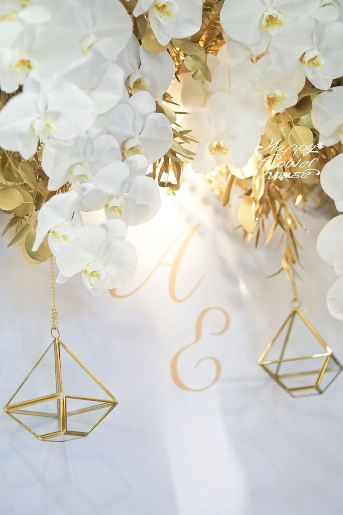 *~花居樂花坊~*1070128大園 桃禧航空城酒店 Anson&Elsa 白金色典雅主題背板設計 婚禮佈置