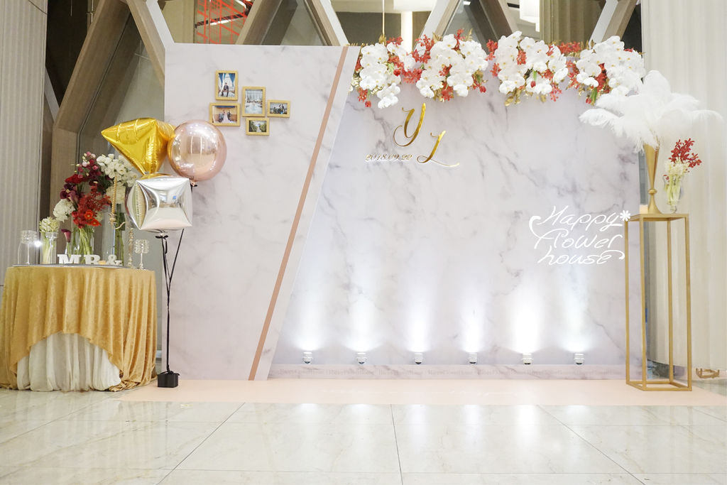 *~花居樂花坊~*1070922桃園 晶宴婚宴會館 振詮&玉珍 大理石主題背板設計 婚禮佈置