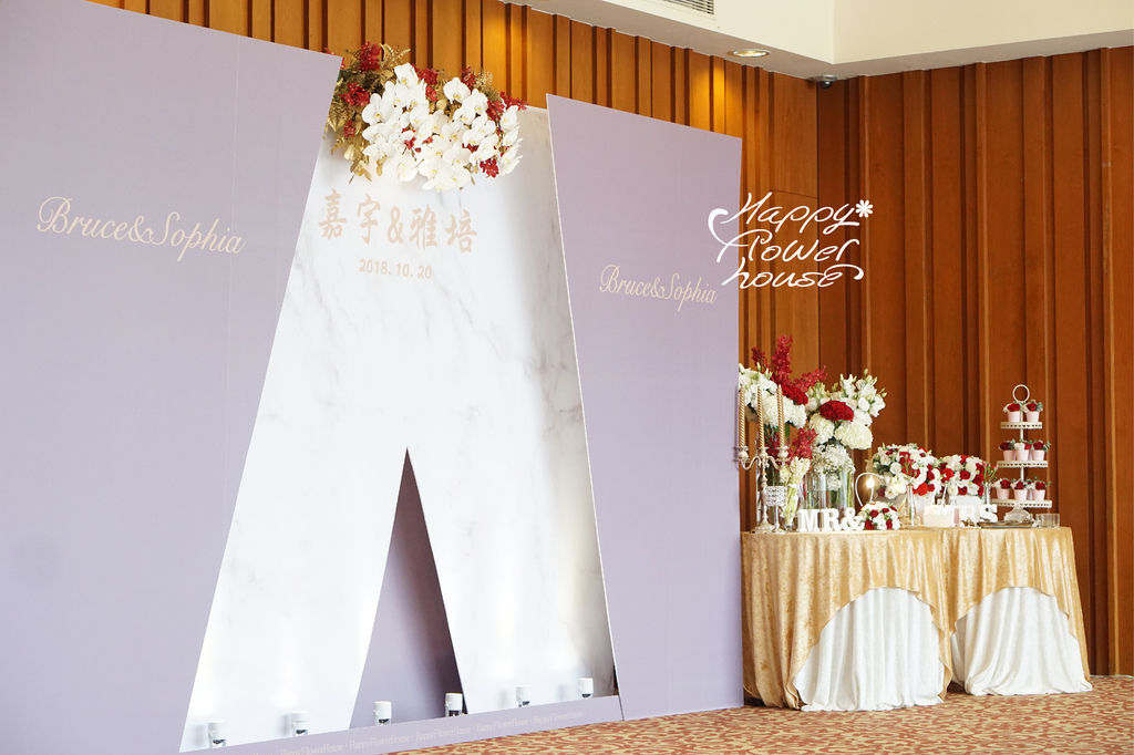 *~花居樂花坊~*1071020 中壢 南方莊園 嘉宇&雅培 大理石主題背板設計 婚禮佈置
